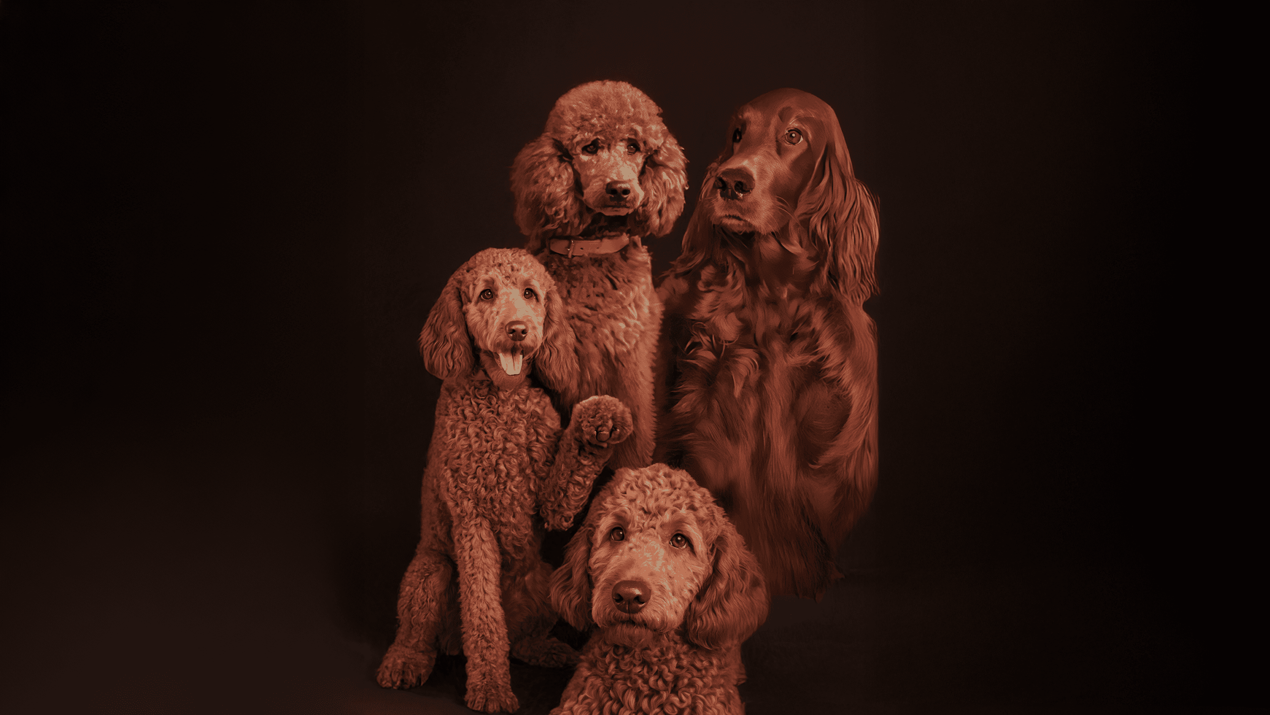 Irish Setter und Pudel, basierend  auf den jeweiligen FCI Standards